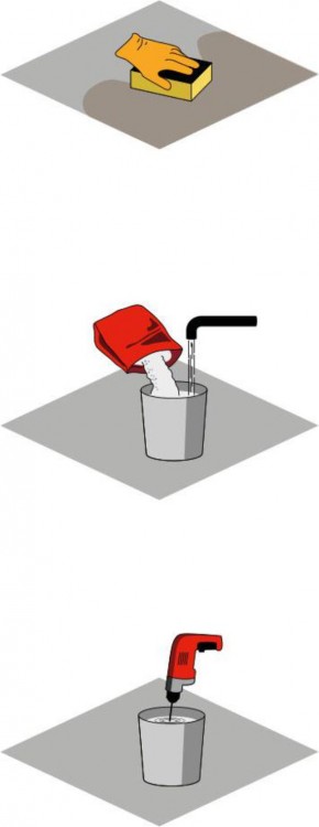 - Nie używać mieszanki, gdy ta zaczęła już wiązać; dlatego należy rozrabiać jedynie niewielkie ilości produktu, które można wykorzystać w ciągu czasu przydatności do użycia.